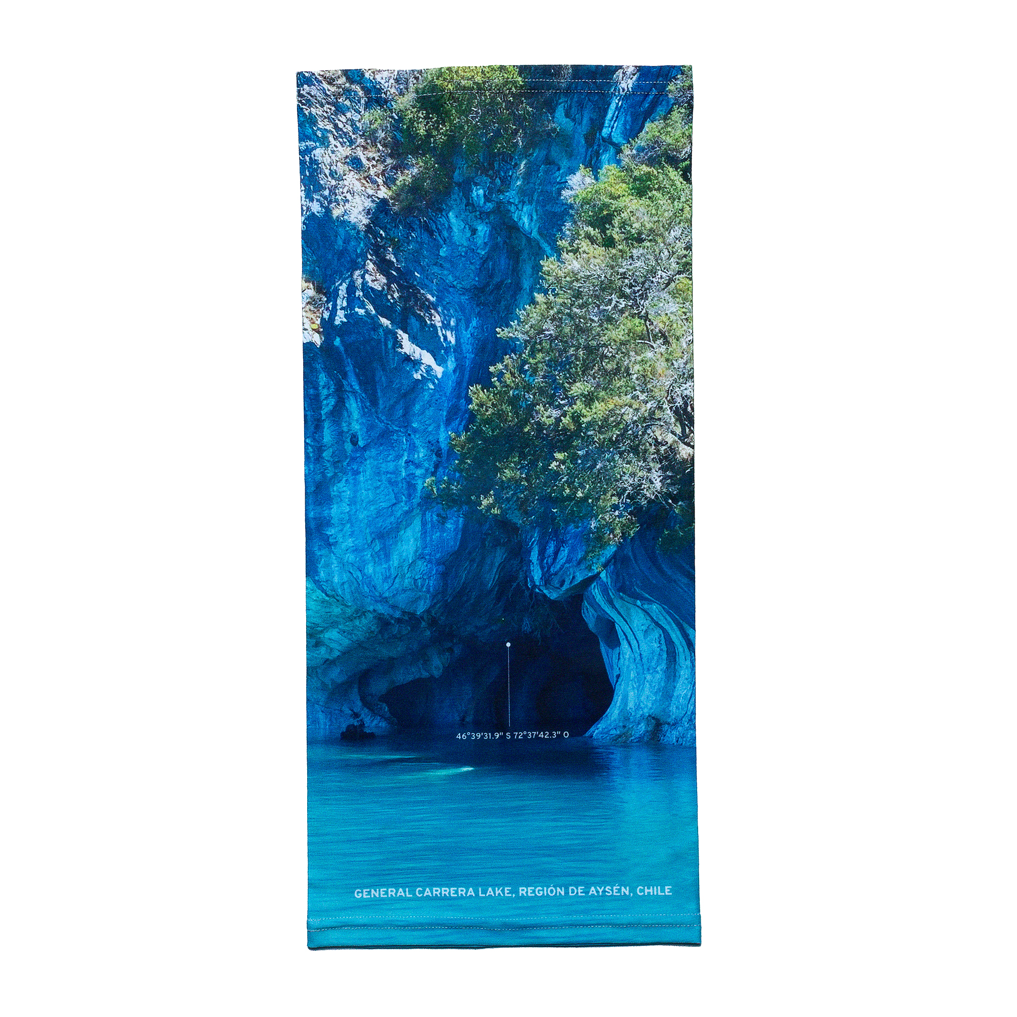 La luz del sol se filtra a través del agua glaciar, pintando las paredes de mármol en tonos de azul, blanco y plata — una catedral silenciosa moldeada por las olas durante miles de años. Solo se llega en bote, cruzando el lago frío y vasto donde el silencio se mezcla con los ecos.